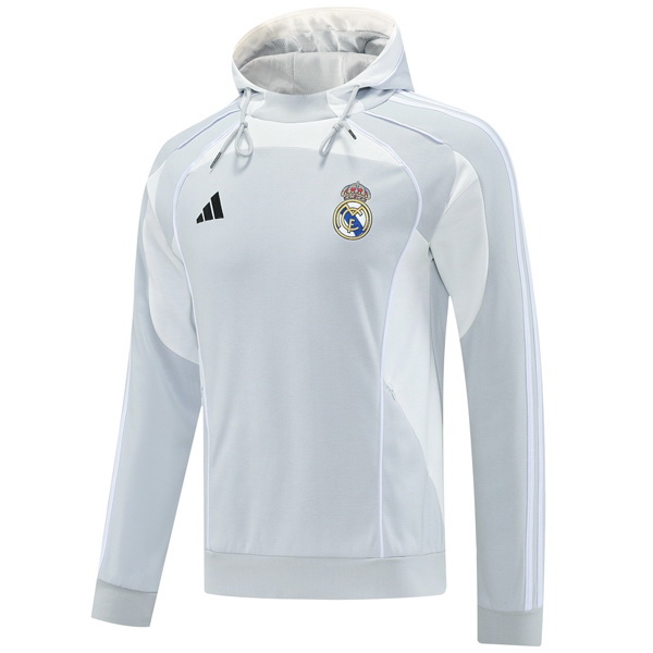 Chaqueta Con Capucha Real Madrid 2025 2026 Gris Blanco